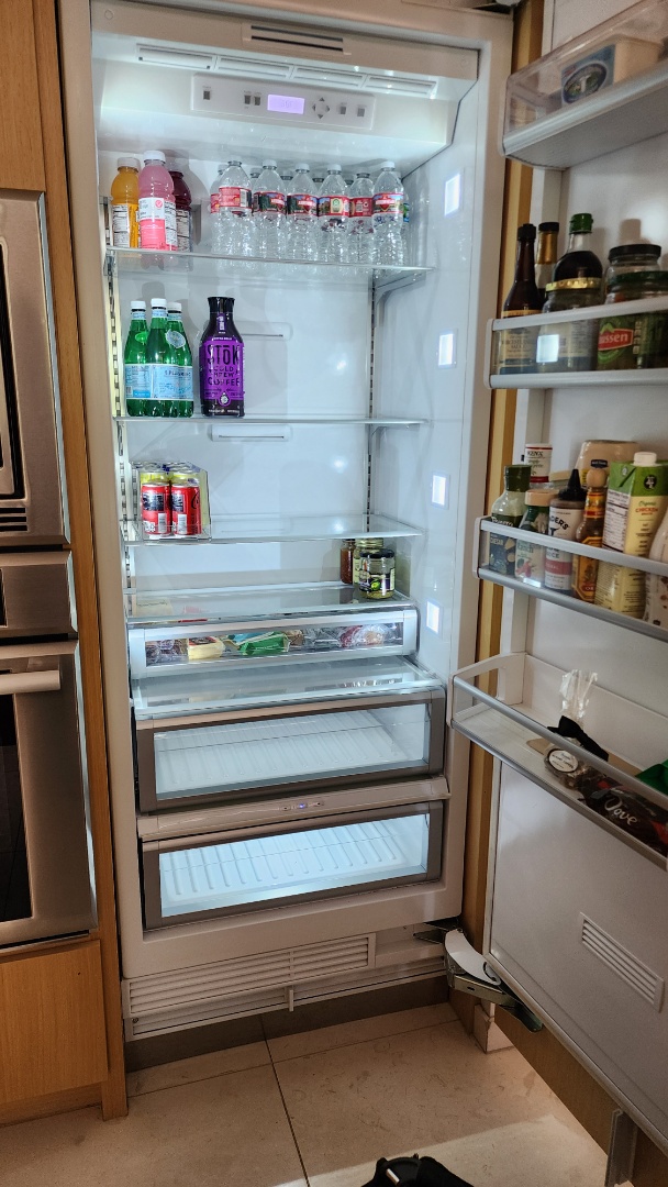 Upon inspection of the Sub-Zero built-in refrigerator, it was determined that the cooling performance was suboptimal. A thorough examination revealed that the condenser coil was significantly dirty, which can impede proper cooling. I meticulously brushed and vacuumed the condenser coil to remove accumulated dust and debris. This process restored the coil's efficiency, enhancing the refrigerator's cooling capability. The appliance is now operating at optimal performance levels, ensuring food items remain fresh and preserved.